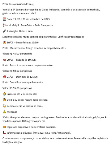 SORTEIO DE BOXES – TEMPORADA DE VERÃO 2025/20269 de agosto de 2025Manutenção Poço Artesiano26 de agosto de 2025 Publicado por clube on 20 de agosto de 2025 Categorias Eventos Tags Compartilhar0 clube Artigos Relacionados25 de fevereiro de 2026LUAU – CRILeia mais 16 de janeiro de 2026FESTA DO HAWAI – 2026Leia mais 16 de dezembro de 2025Chegada do Papai NoelLeia mais Comments are closed.