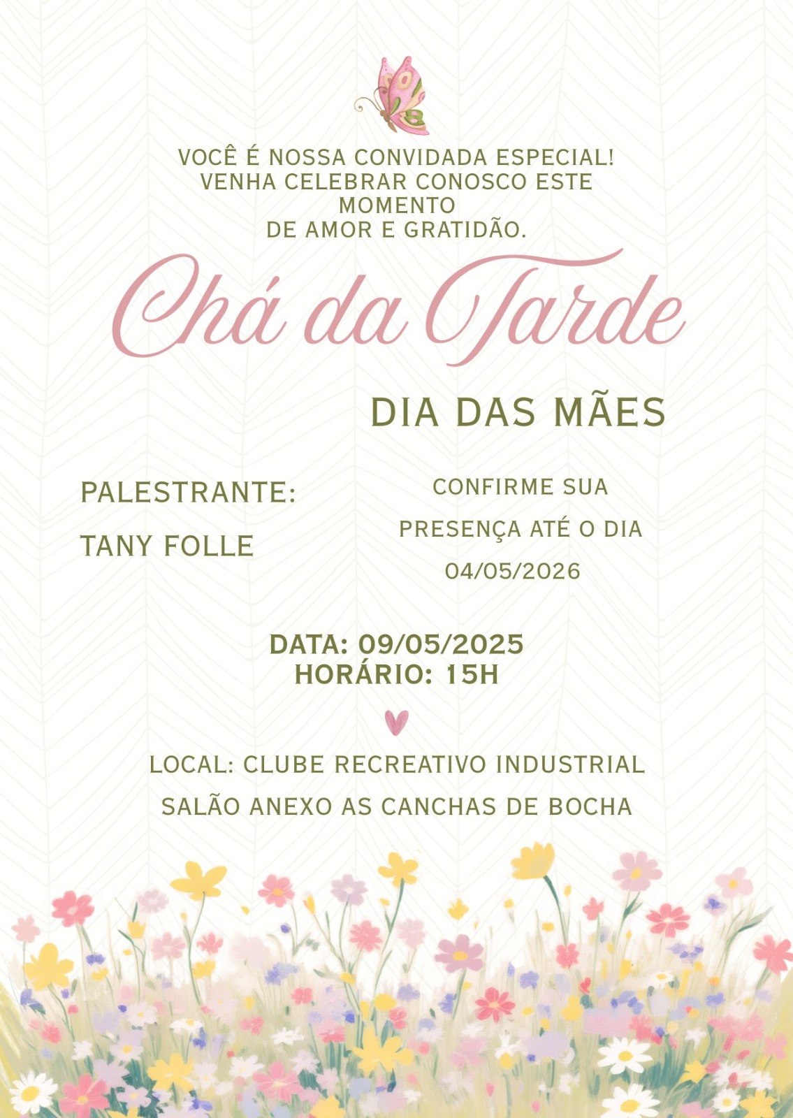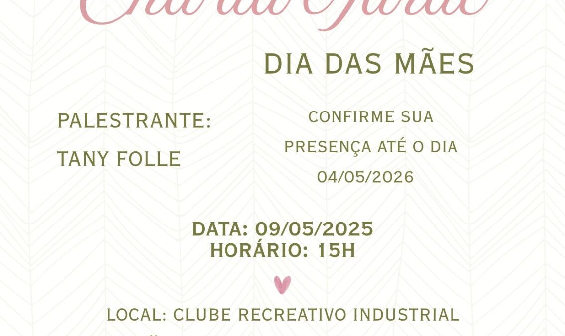 26 de fevereiro de 2026Com muito carinho convidamos você para um momento especial em celebração ao dia das mães.
